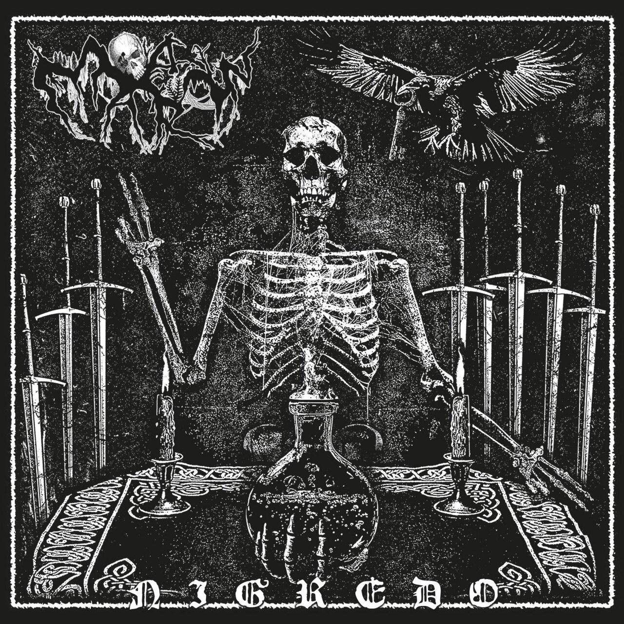 I agree - excellent album of black metal; no frills, lots of nausea & twisy, bendy guitar noises with deep, unsettling chords being chugged out. Grim, dark vocals in English, and adequate, standard percussion, again no frills. An overall sinister and pleasing sound, not always pounding fast, and quite satisfying. Very fine.