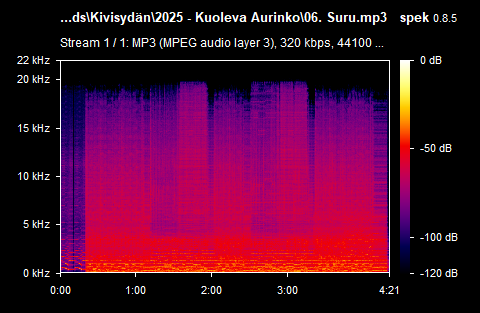 | Length / Продолжительность: 01:11:44 Tracks / Треклист: 01. Alkusoitto: Kuoleman Kellot (01:47) 02. Varjoihin (04:02) 03. Palava Mieli (04:57) 04. Mustat Ruusut (09:38) 05. Välisoitto: Kuolema Seuraa Minua (01:52) 06. Suru (04:21) 07. Mies Ja Köysi (05:56) 08. Tähtien Taa (03:25) 09. Välisoitto: Toivo (01:45) 10. Sinulle (12:10) 11. Viimeinen Toiveeni (04:12) 12. Välisoitto: Uusi Kuu (02:51) 13. Kuoleva Aurinko (10:38) 14. Loppusoitto: Vapaus (04:10) Spectre | |
